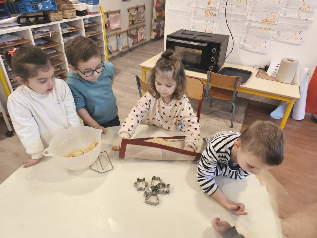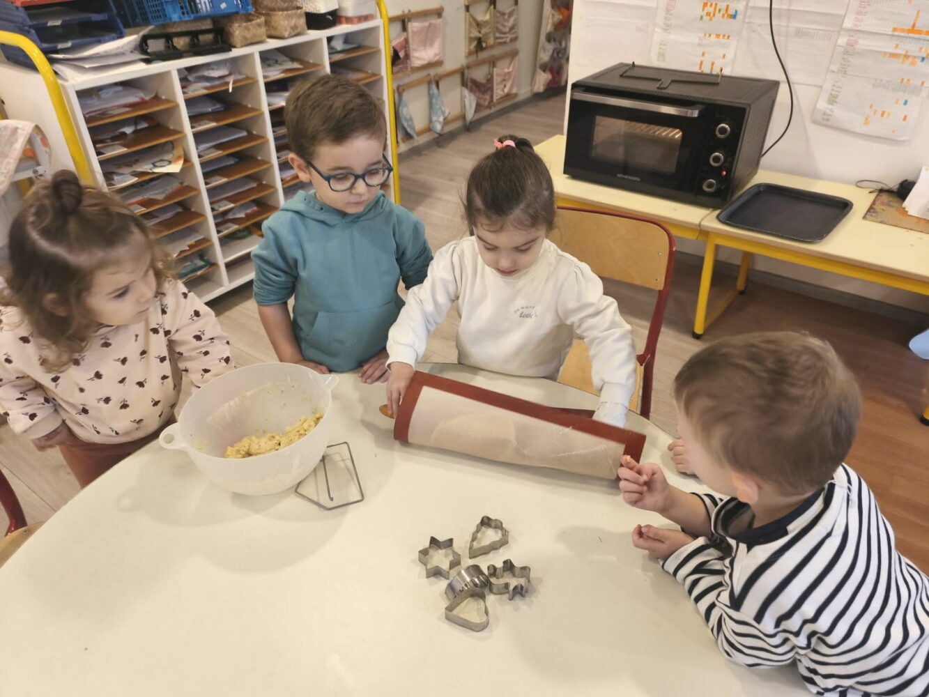 Atelier pâtisserie pour les anniversaires de décembre par Sylvie Leray | Déc 15, 2025 | Accueil, maternelle Les élèves de maternelle nés en novembre décembre ont réalisé de bons petits sablés qu’ils ont partagé avec leur copains.