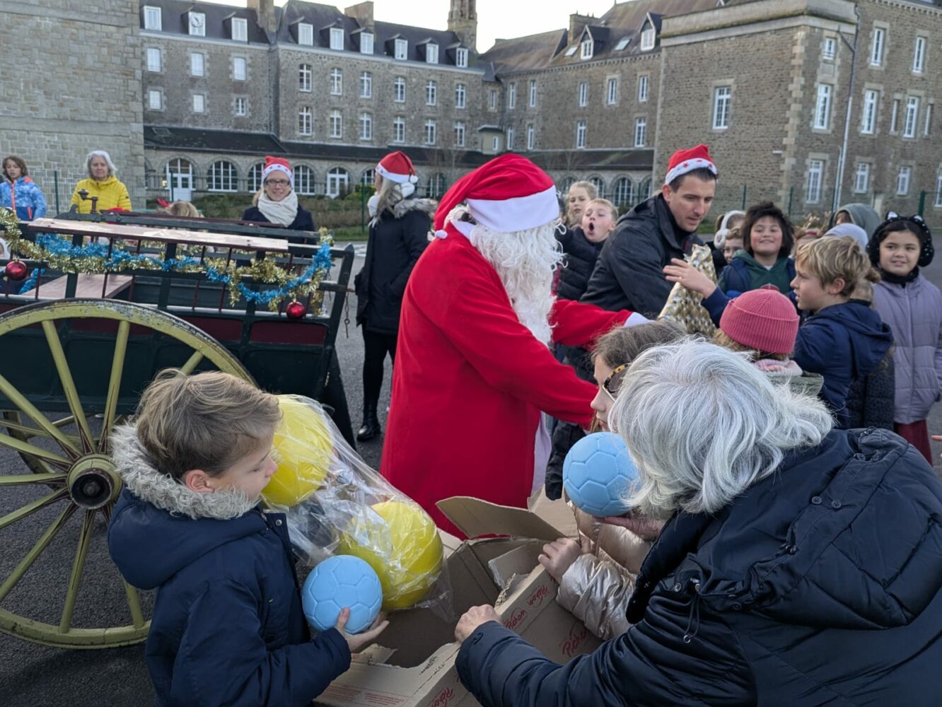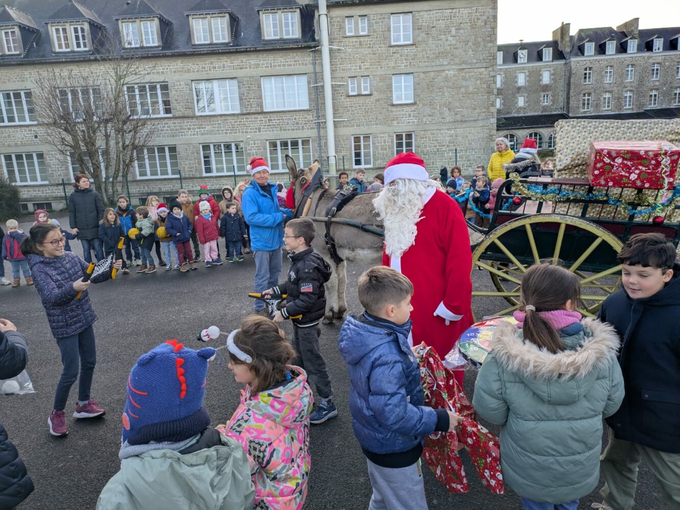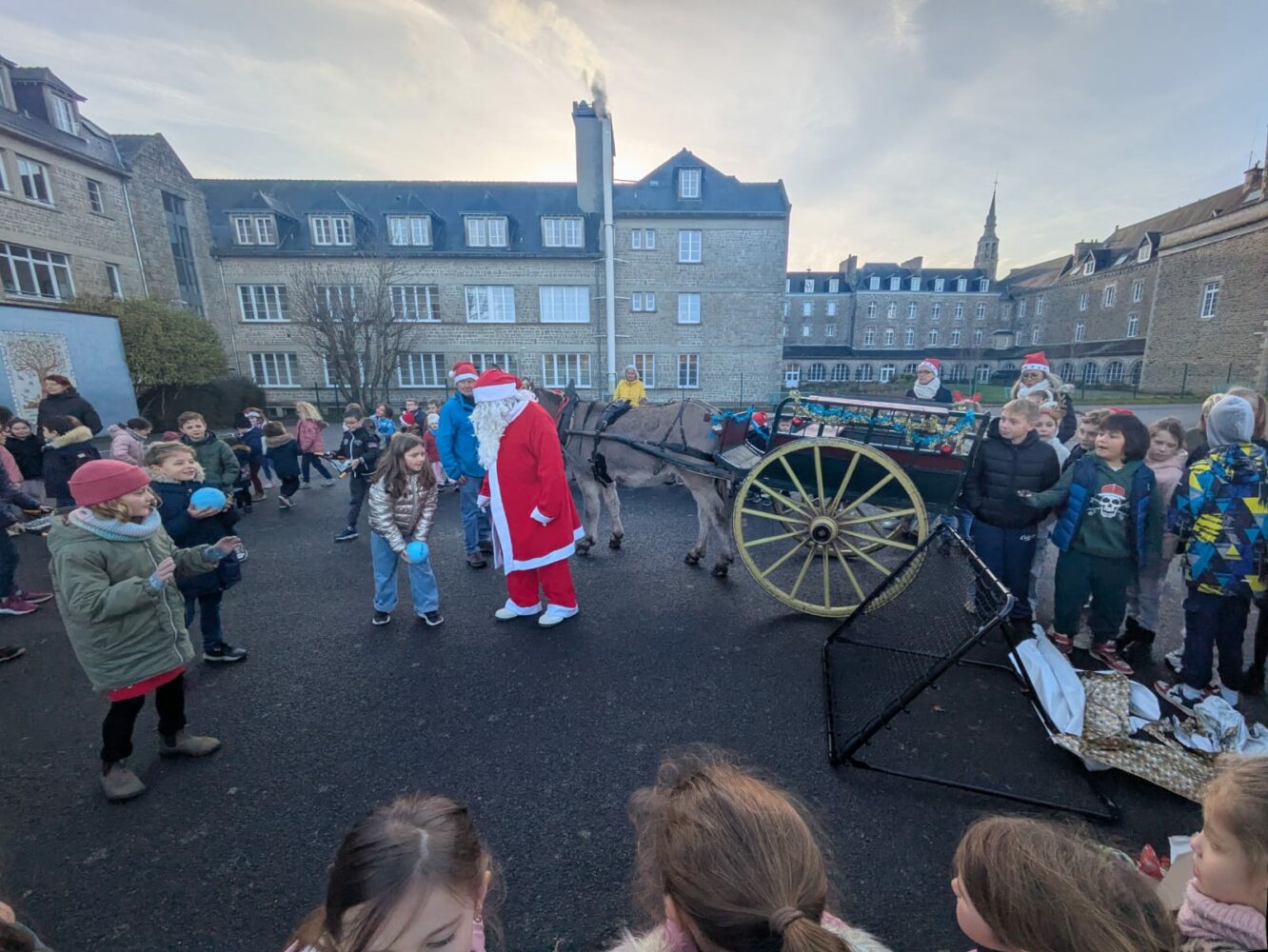 Ce vendredi 19 décembre 2025 a été une journée riche pour célébrer Noël : la venue du Père Noël en calèche sur la cour de l’école fera des souvenirs mémorables, l’ouverture des cadeaux collectifs : un carrousel et des ballons de basket pour les classes de maternelle, des ballons de hand, des cibles pour les ateliers de calcul, un “but” de tchoukball pour les élèves de Primaire. Un grand merci au Père Noël de l’Apel pour ce moment festif.