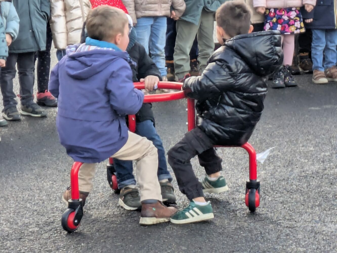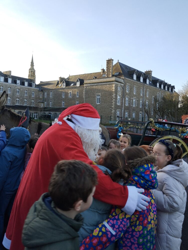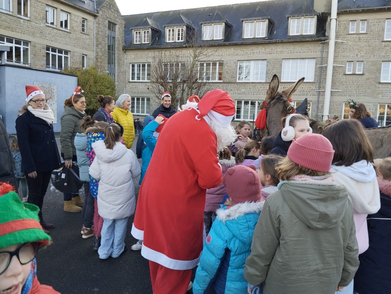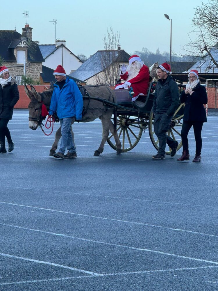 Ce vendredi 19 décembre 2025 a été une journée riche pour célébrer Noël : la venue du Père Noël en calèche sur la cour de l’école fera des souvenirs mémorables, l’ouverture des cadeaux collectifs : un carrousel et des ballons de basket pour les classes de maternelle, des ballons de hand, des cibles pour les ateliers de calcul, un “but” de tchoukball pour les élèves de Primaire. Un grand merci au Père Noël de l’Apel pour ce moment festif.