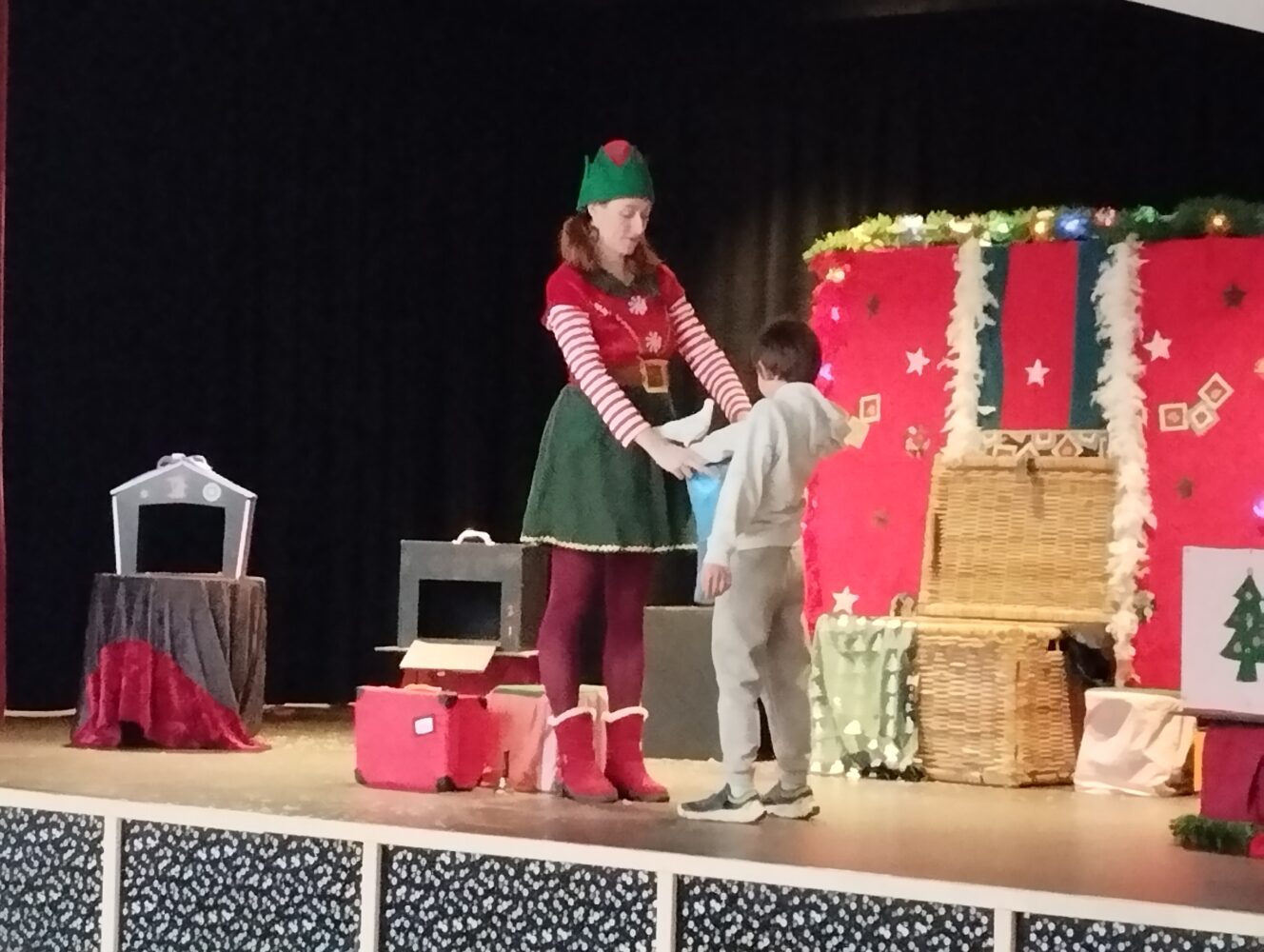 L’après midi les enfants se sont rendus à la salle des fêtes de la commune pour assister au spectacle offert par la Mairie : “Le le lutin de Noël” : une histoire tout en magie.