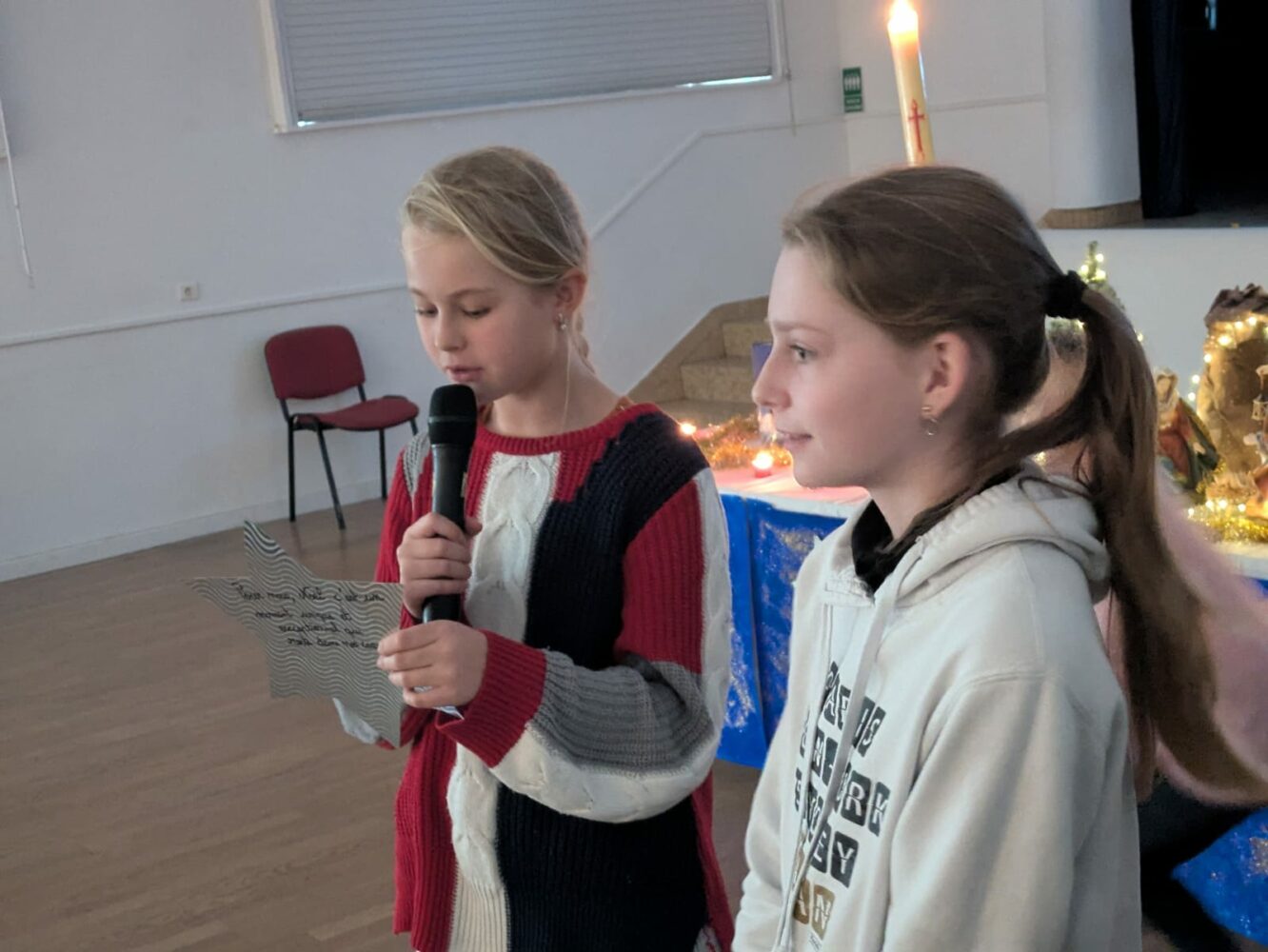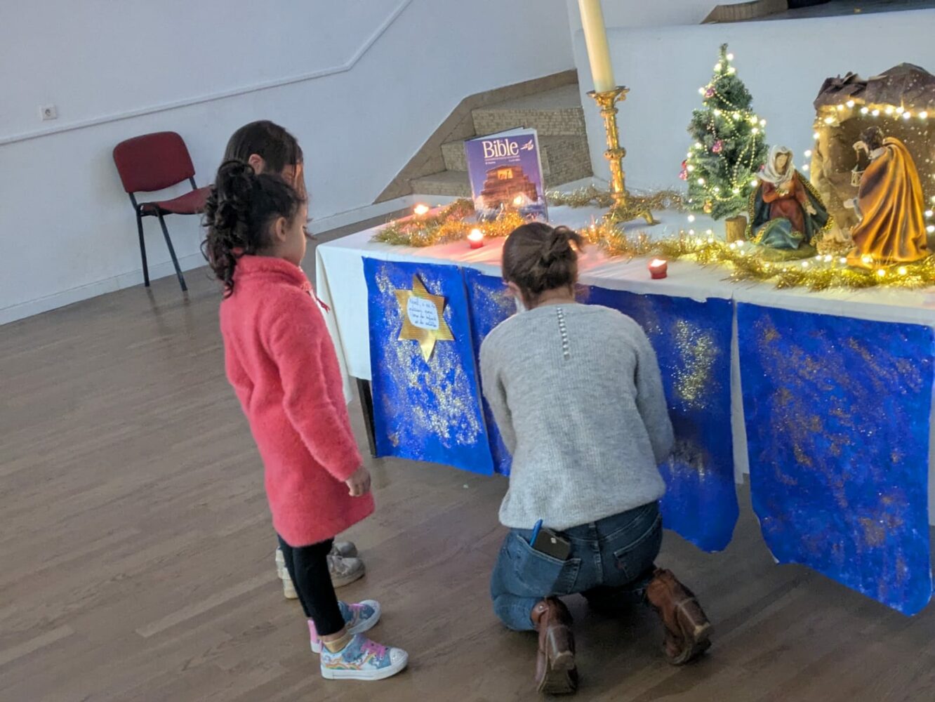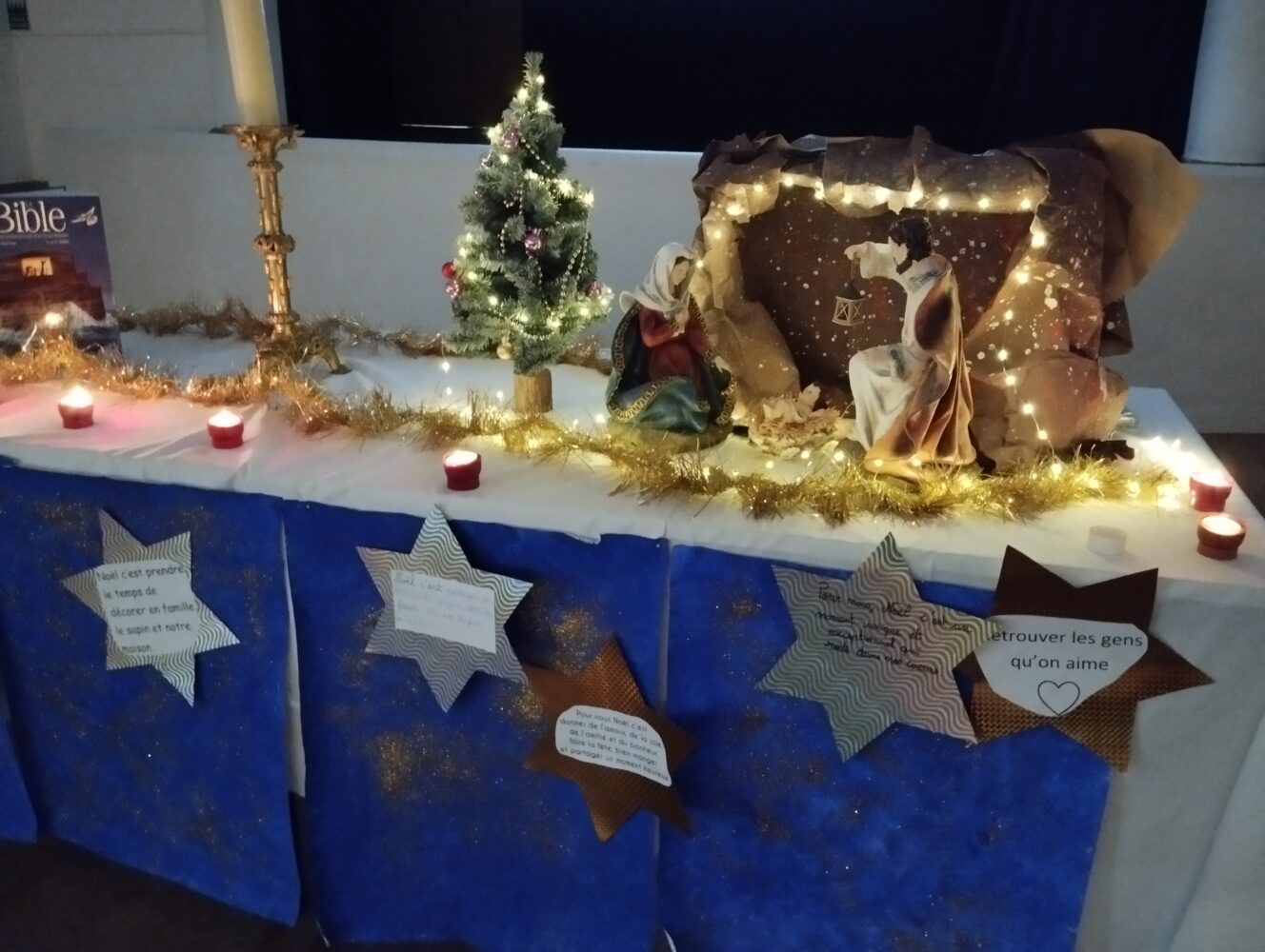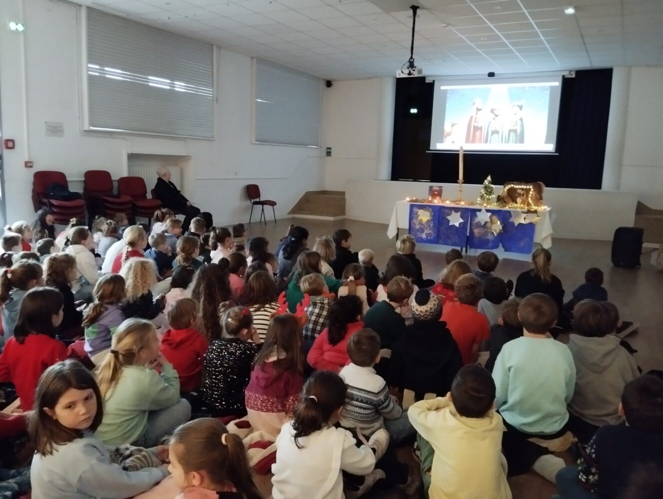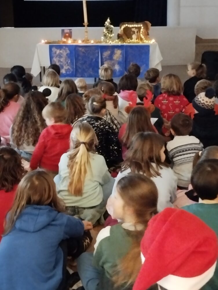 Jeudi 18 décembre nous nous sommes tous réunis (les enfants de toutes les classes et leurs enseignantes) dans notre salle Marie Saiget. Nous avons célébré ce moment si important dans la vie des chrétiens. Sur le thème de l’étoile, les enfants ont chanté, écouté l’histoire des Rois Mages et des textes de la Bible et partagé un temps de fraternité grands et petits ensemble.
