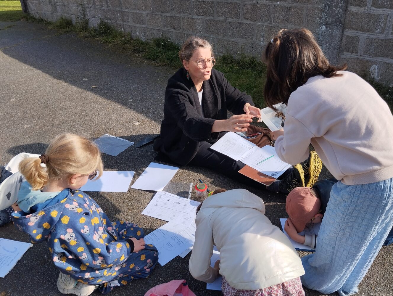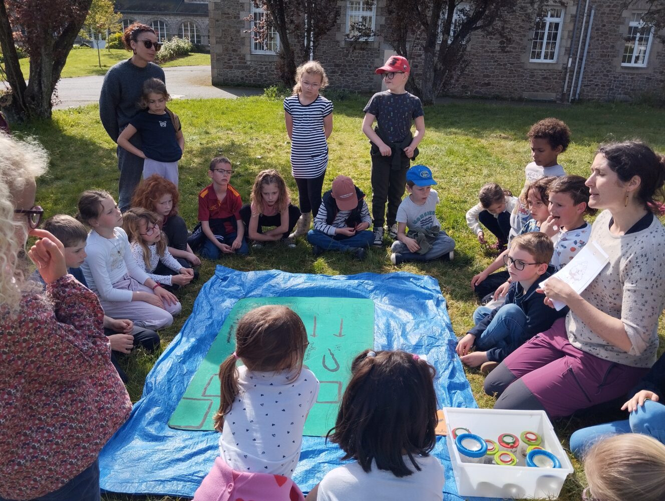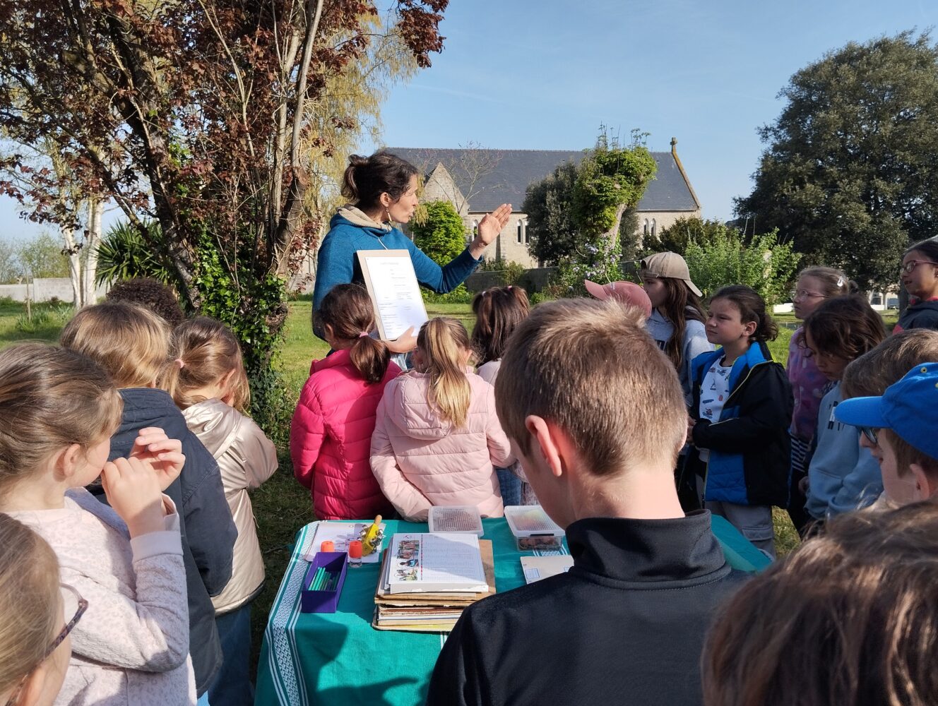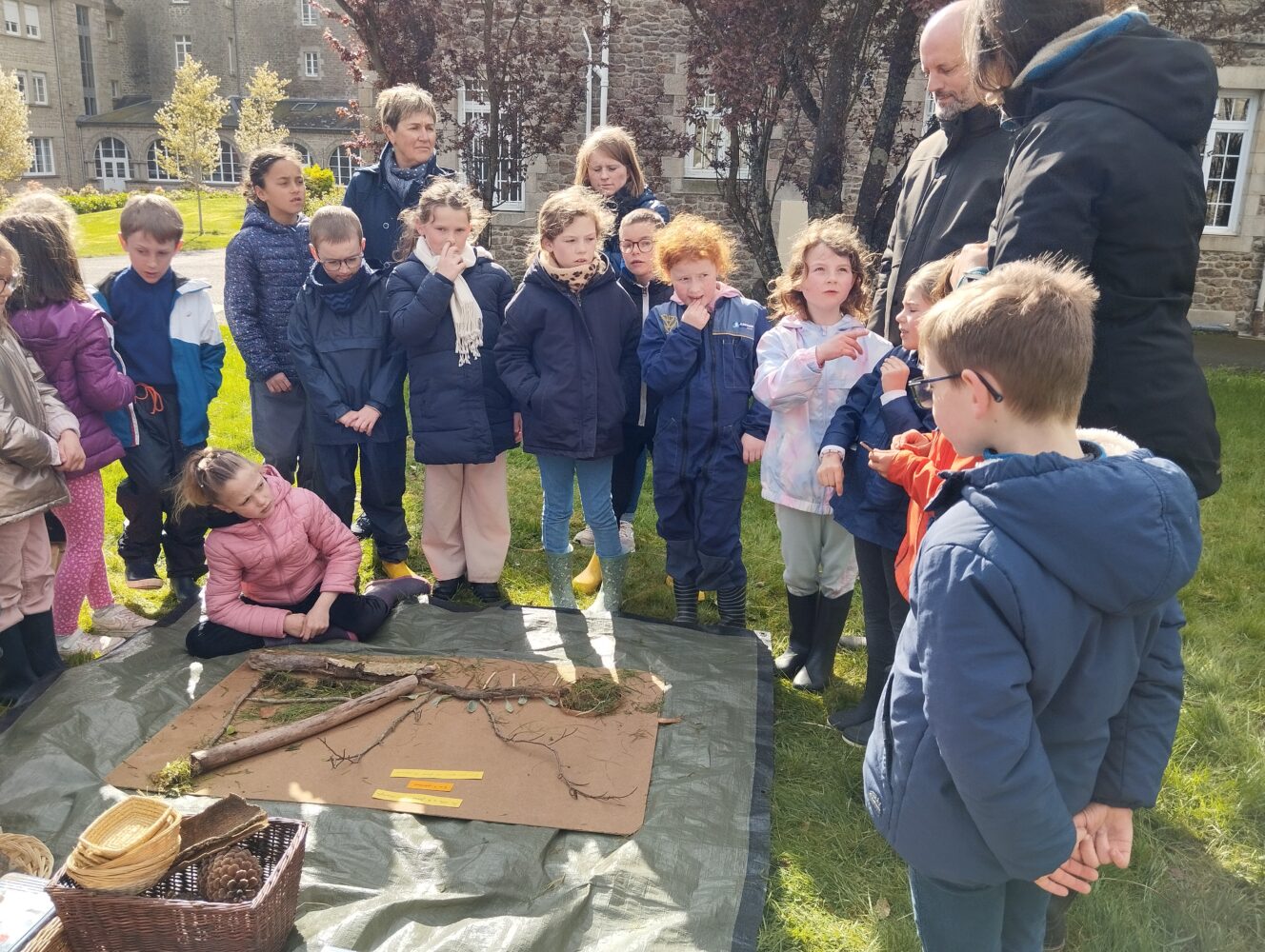 Les élèves de CE1/CE2 ont travaillé toute la matinée en “classe dehors” avec Edwidge, la maîtresse, des parents et grand-parent sur la thématique des “décomposeurs”. Ces petites bêtes sont des êtres vivants qui contribuent à la dégradation de la matière organique morte ou des excréments en les restituant sous forme minérale. Ils jouent un rôle crucial au sein d’un écosystème car ils participent au recyclage des éléments. Les enfants ont du chercher, observer attentivement, classer et décrire ces petites bêtes si utiles. Le parc des soeurs est un lieu formidable pour ce travail hors la classe.
