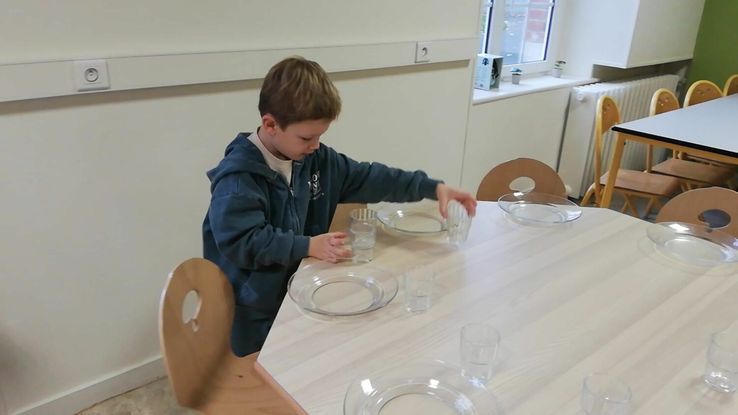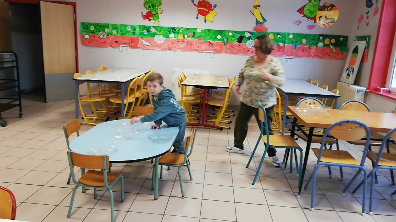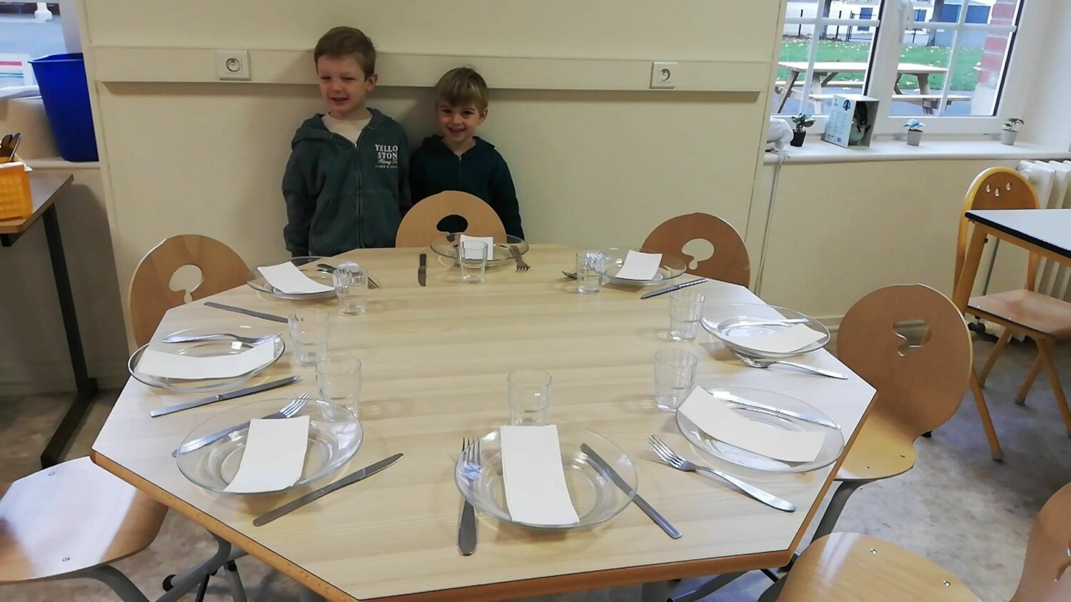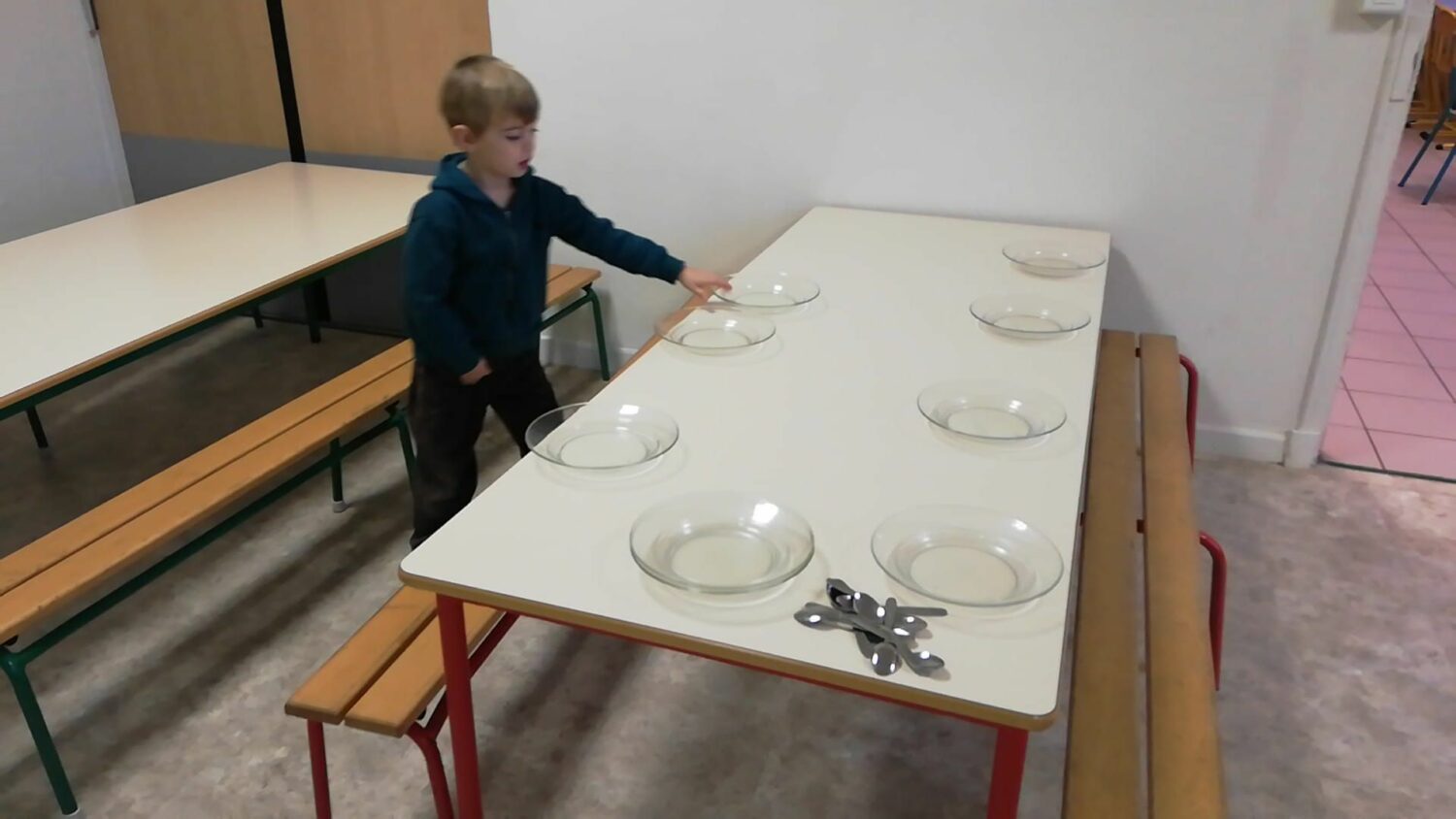 Depuis ce matin , les maternelles ont l’occasion de vivre un nouvel apprentissage : mettre le couvert à la cantine.
